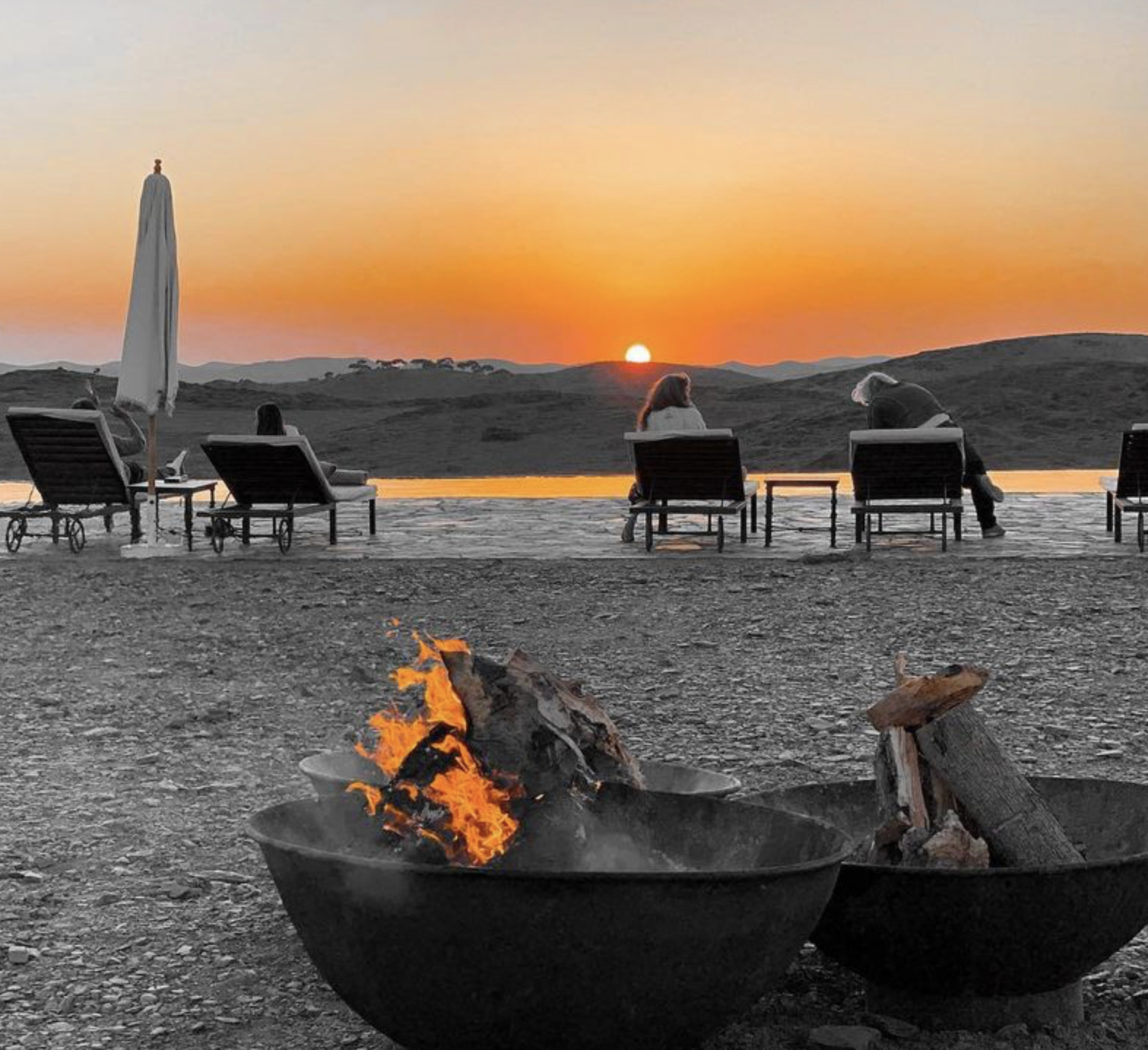 Our visit will be perfectly timed to catch the late afternoon light. The pool is the heart of the afternoon — its panoramic oasis area gives wide-open views of rolling desert hills, olive trees, and unforgettable sunset views and there will be cocktails to enjoy as the sun sets.