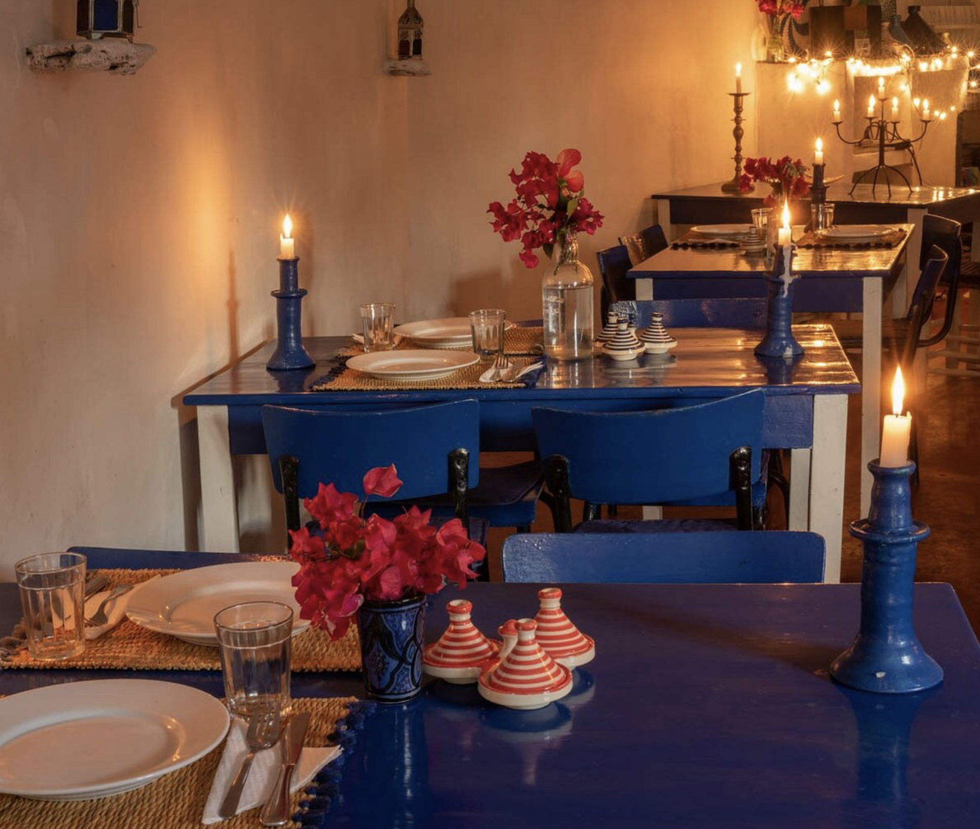 In the late evening, head into the Ourika Valley to The Bennounas Farm for an evening that's equal parts cooking class and mountain retreat. Chef Azzeddine Bennouna and his wife Marie welcome you to their villa, perched against the Atlas Mountains. The afternoon begins with mint tea and a walk through the gardens to pick seasonal produce. A local Berber woman leads you through making couscous the traditional way using the two-tiered couscoussière. While it steams, swim in the pool or sit with the view. Then eat what you've made — dinner on the terrace as the mountains turn pink, with wine and the kind of quiet that only comes this far from the city. You'll be back at your hotel by late evening.